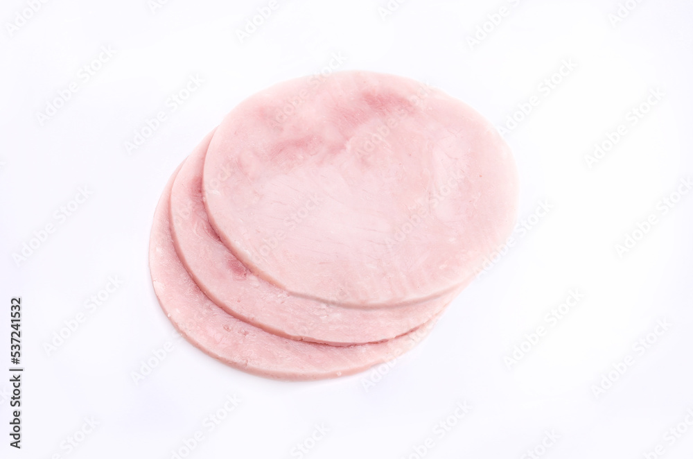 Poultry cold cuts in slices, isolated on a white background, a packshot photo for package design, template.