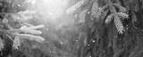 Christmas snowy fir tree branches close up. Christmas and winter concept.