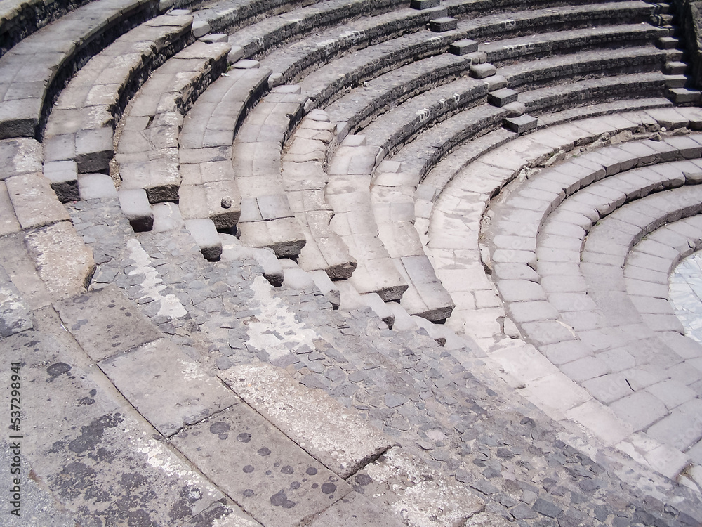 Tiered seating inside the amphitheatre at Pompeii, Italy