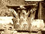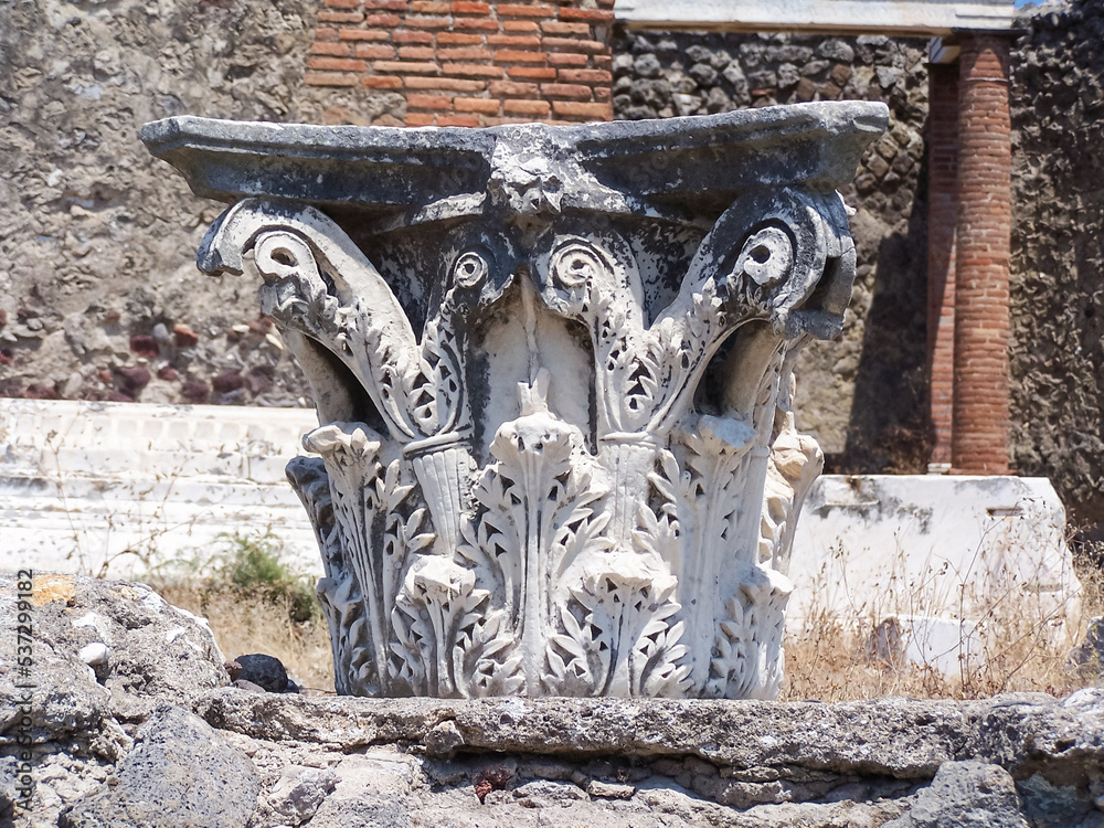 Ornately carved entablature of a corinthian column, Pompeii, Italy