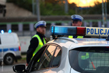 Policjanci ruchu drogowego polskiej policji w mieście.