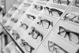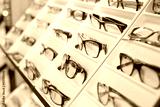 Eyeglasses, shades and sunglasses in optometrist's shop