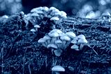 Sulphur Tuft mushrooms growing on dead wood, Surrey, UK