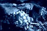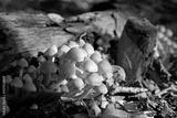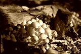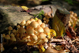 Sulphur Tuft mushrooms growing on dead wood, Surrey, UK