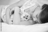 Child and kitten