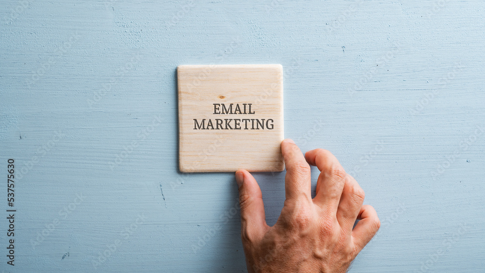 Wooden tile with an Email marketing sign