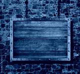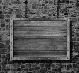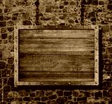 medieval old sign with chain on stone wall