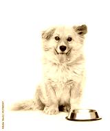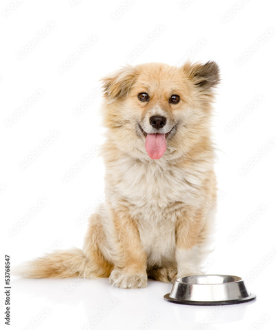 puppy begging for food. looking at camera. isolated on white
