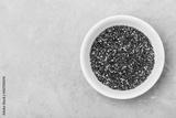 Chia seeds. Organic Dry Black and White Chia Seeds in bowl on gray stone background.