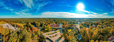 Rudy na Śląsku w Polsce, miejscowość z zabytkowym pałacem i pięknymi lasami. Panorama jesienią z lotu ptaka.