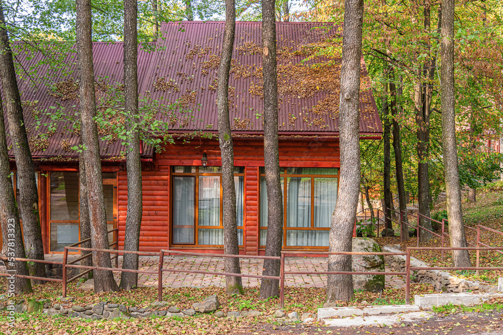House in the forest. House on the background of the autumn forest.