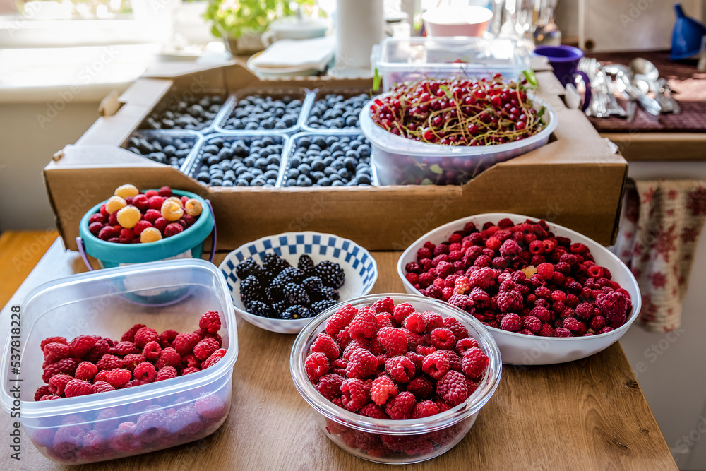 Ripe berries raspberries, blackberries, blueberries and red currants