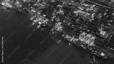 international shipping port load and unloading container by crane onto transport ships and trailer for import export distributing products to customers and consumer over lighting at night scene