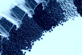 different blue colored plastic resins in laboratory