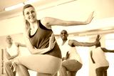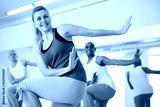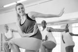 Portrait of smiling young female during group dance workout in fitness center