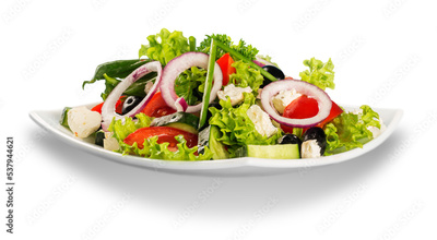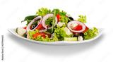 Fresh tasty vegetable salad in bowl on white background