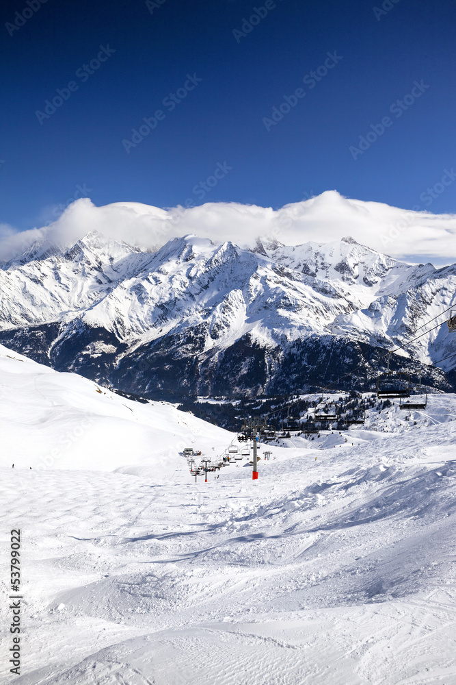 Mountains with snow in winter