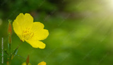 A large yellow flower on a green background, a clean place for text. Green greeting background with a summer flower