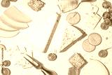 Cheese and fruits on white table background. Brie, camembert, dorblu, grapes, honey, melon and crackers as wine snack, appetizer or antipasti. Cheese platter. French cuisine. White cheese assortment