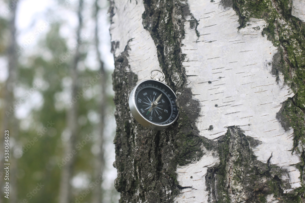 round compass on natural background