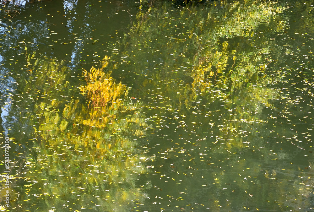 The surface of river water on an autumn day