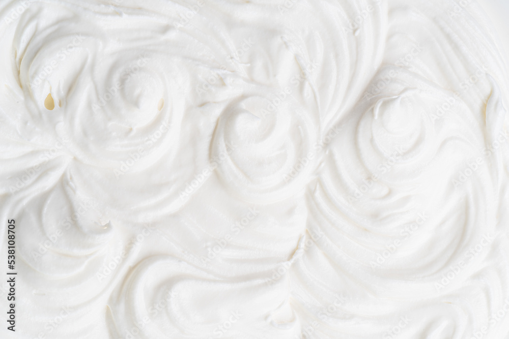 Creamy waves and swirls in yoghurt or cream surface. Top view.