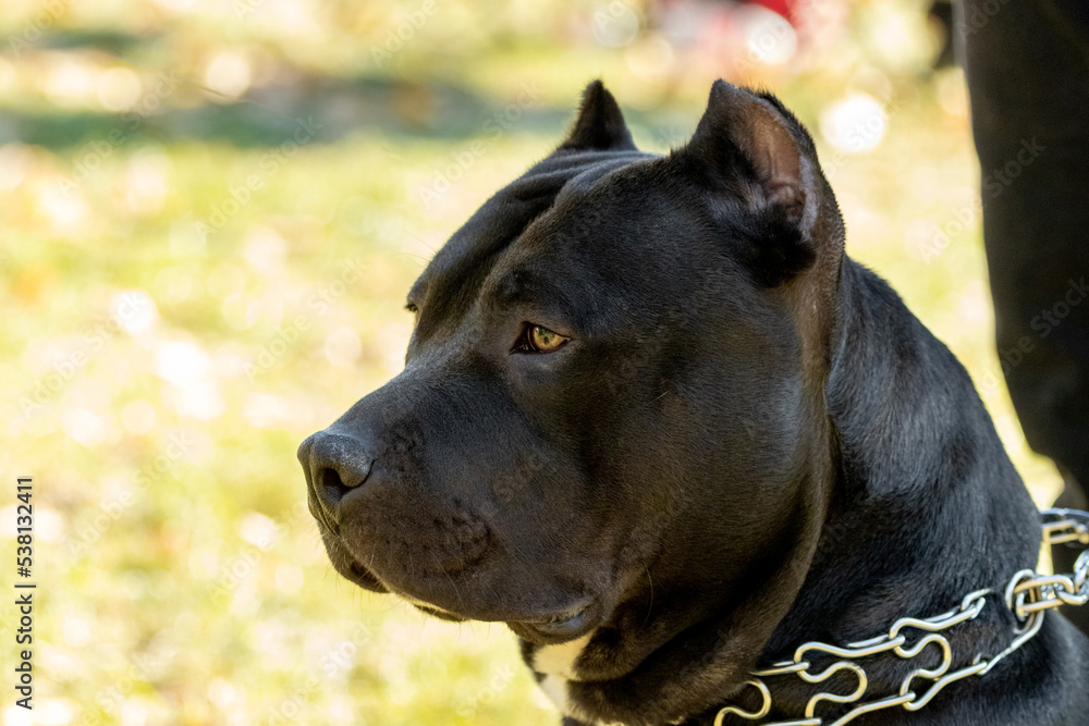 Portrait of Amstaff dog, American Staffordshire Terrier, close up outdoors