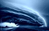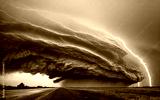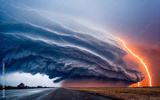 dramatic and powerful tornado. Lightning thunderstorm flash over the night sky. Concept on topic weather, cataclysms (hurricane, Typhoon, tornado, storm). Stormy Landscape.