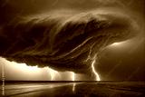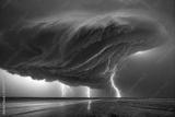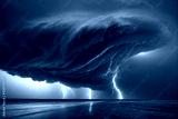 dramatic and powerful tornado. Lightning thunderstorm flash over the night sky. Concept on topic weather, cataclysms (hurricane, Typhoon, tornado, storm). Stormy Landscape.