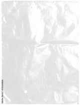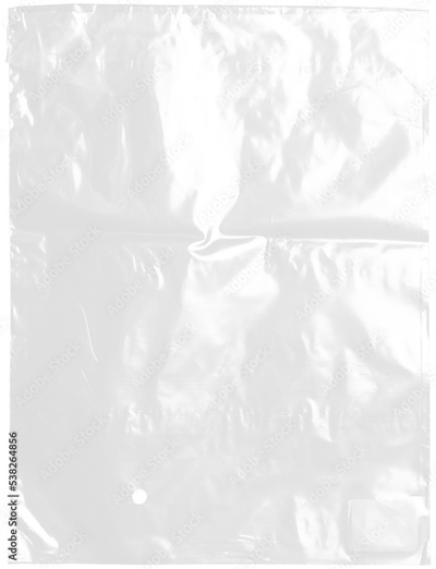 plastic transparent cellophane bag on white background. The texture looks blank and shiny. The plastic surface is wrinkly and tattered making abstract pattern.