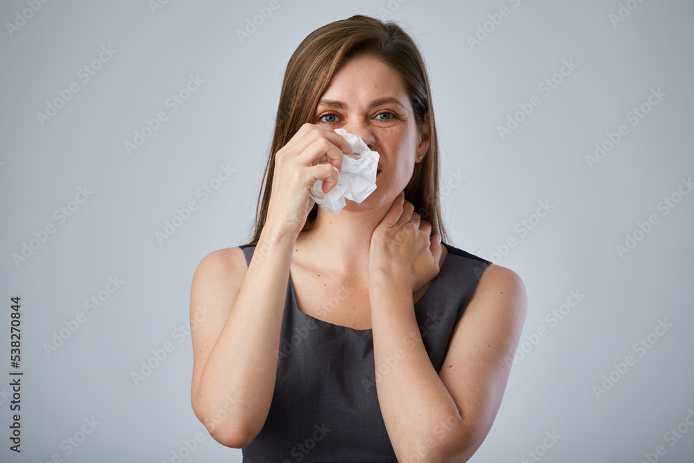 Young woman allergic with symptom of allergies. isolated advertising portrait.
