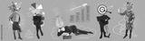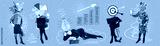 Woman in business. Contemporary art collage made of shots of mature women working hardly isolated over blue background, Concept of lady boss, finance, career, leader, team.
