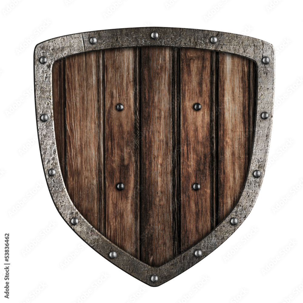 Old wooden shield isolated on white
