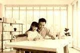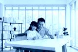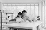 Attractive asian father teaching little child daughter learning studying doing homework at home, Family quality time and e-learning education concept