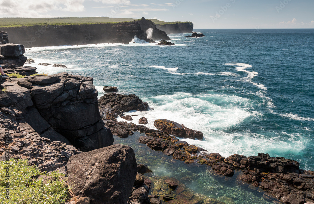 rocky coastline with crashing waves at Punta Suarez, Espanola, Galapagos