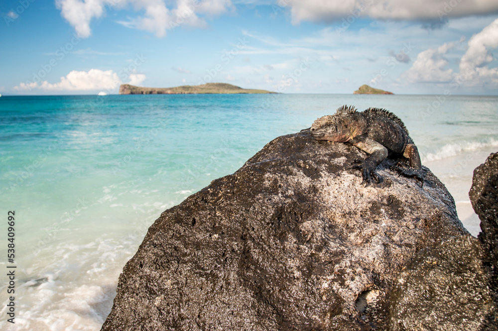 marine iguana basking on the beach of Gardner Bay, Espanola, Galapagos