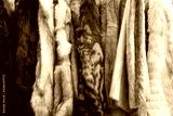 Fur coats texture background. Colorful, different, luxury and soft winter fashion hanging on rack at store. Vintage coats made of animal fur. Mink, rabbit, fox and sheep fur. Close up