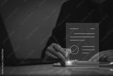 Electronic signature business concept. Manager is electronic sign an agreement, business investment approved, executing plan, project approved. digital signature. electronic document, digital business