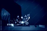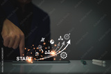 Startup business. Businessman starting an online company. Planning his business, trade, profits, future investment on tablet virtual screen. Startup to success business. digital planning technology.