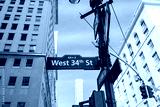 Close up view of West 34th Street Sign in Manhattan. New York. USA.