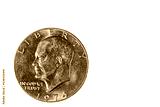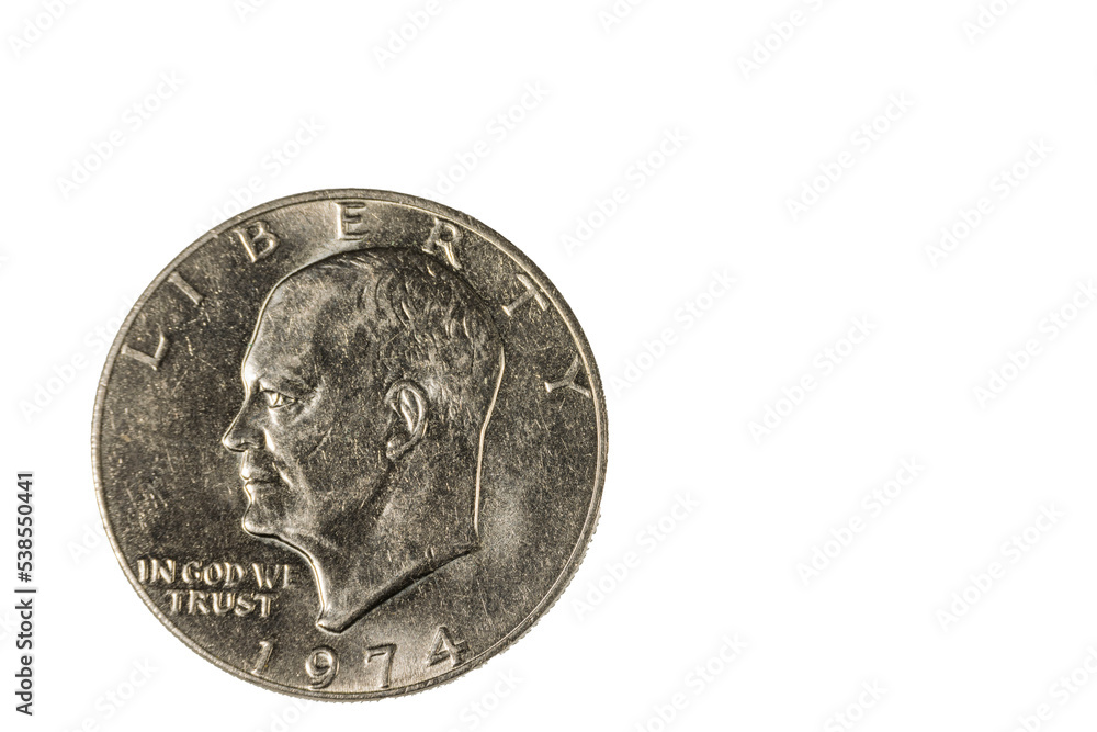 Close-up view of front of one dollar coin dated 1974. Numismatic concept.