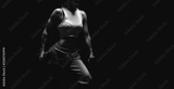 Athletic fitness woman posing in the studio on a dark background. Photo of an attractive woman in fashionable sportswear. Sports and healthy lifestyle