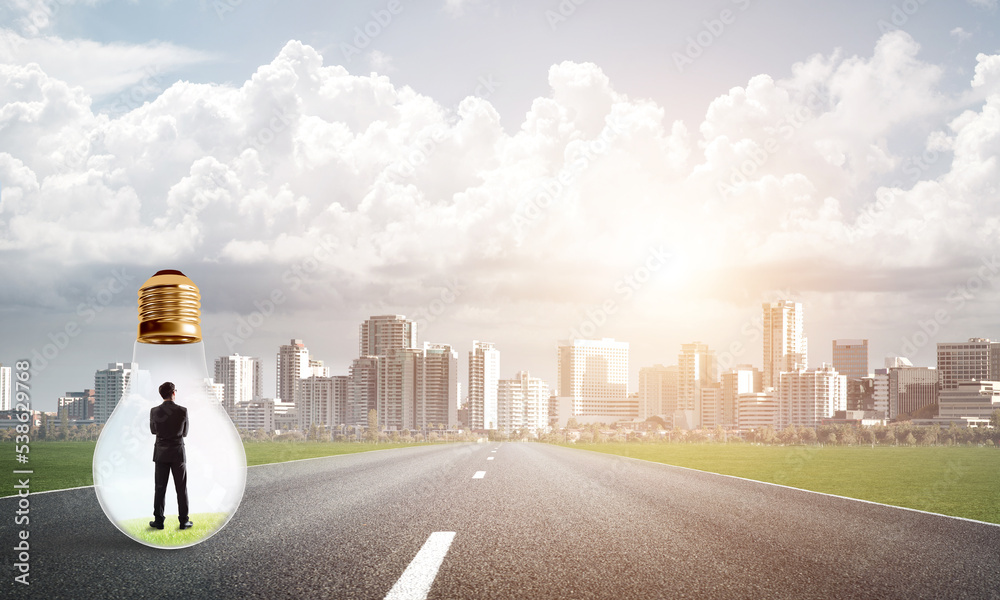 Businessman inside light bulb