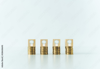 Lightbulb and bright brain icon with coin. Idea of business financial fund or money investment planning. Success or growth concept of income, saving or earning.