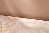 Blank, Empty scene, minimal pink beige marble background for product presentation. Beige wall. Design Template. Front diagonal view.