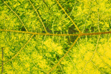 Macro photo of autumn green yellow leaf with natural texture as natural background. Background close-up texture of green leaves with veins, autumn foliage, the beauty of nature.