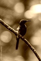 Male Copper-throated sunbird perching on the tree branch.