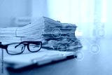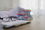 document paperwork analysis concept, manager work accounting storage datum file folder stack record report