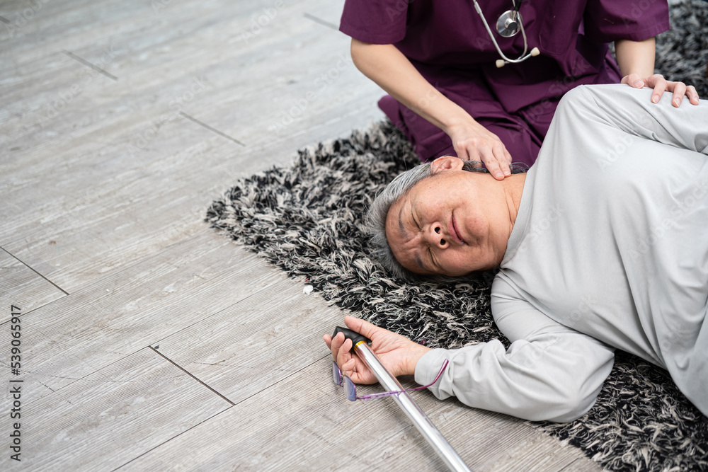 Elderly older mature female having an accident. Insurance health care. caregiver helping senior female from falling on the ground.
