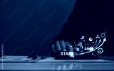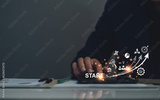 Startup business. Businessman starting an online company. Planning his business, trade, profits, future investment on tablet virtual screen. Startup to success business. digital planning technology.